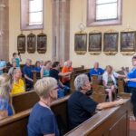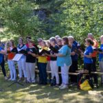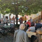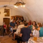 Nach 2- jährigem Ausfall konnten wir 2022 wieder einen Vereinsausflug, diesmals ins Weinviertel durchführen. Erste Station war das Nonseum in Herrnbaumgarten. Nach der ca. einstündigen Führung und einem Abschiedslied fuhren wir weiter nach Poysdorf . Nach dem Mittagessen im Kolpinghaus folgte eine 2 stündige Traktorfahrt durch die Weingärten und Kellergassen von Poysdorf und Umgebung. Anschließend bezogen wir das Quartier im schönen Hotel Neustifter und beendeten den Tag nach einem gemütlichen Abendessen im Freien mit einer interessanten Dämmerungs- bzw. Nachtwanderung durch die Kellergassen. Tags darauf fuhren wir nach dem Frühstück nach Klein-schweinbarth, wo wir am Florianiplatz mit der Fatima-Messe unserer Chorleiterin den Gottesdienst im Freien mitgestalteten. Natürlich durften nach der Messe auch einige heitere Lieder nicht fehlen. Vor dem Mittagessen im GH Schleining besichtigten wir noch die Fatimastatue sowie die Pfarrkirche. Danach konnten wir im Keller der Familie Kaller – die uns vorher schon in Kleinschweinbarth begleitete und führte – Marillen- und Zwetschken-Schnäpse verkosten. Ein kurzer Spaziergang am nahegelegenen Kreuzberg mit Blick nach Mikulov in Tschechien tat uns sehr gut. Auf der Rückfahrt hatten wir dann in Poysdorf noch die Gelegenheit zum Einkauf in der Vinothek. Ein großer Dank an unsere Sängerin Kerstin, die mit ihrem Mann Andi die Vorbereitung und Durchführung des schönen Ausflugs bewerkstelligte.